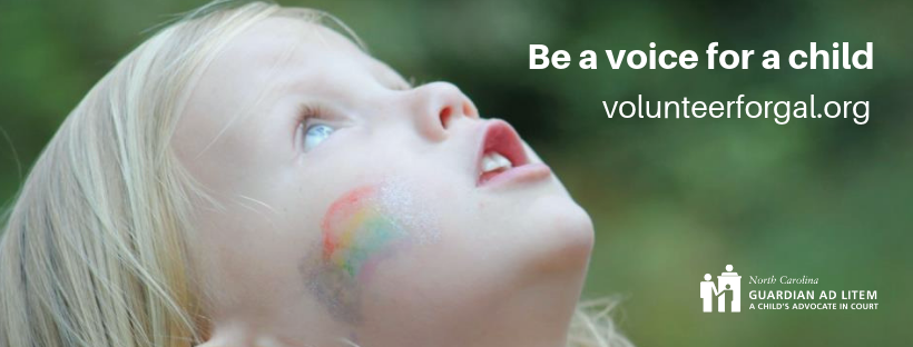 The Guardian ad Litem(GAL) program recruits, trains, and supervises a group of 150+ community volunteers paired with attorneys to act as court advocates for abused and neglected children in our community. The program's purpose is to ensure that children involved with the Buncombe County Department of Social Services have an advocate in court who is focused solely on their best interest and can help provide an objective overview of their wishes and needs to the court.