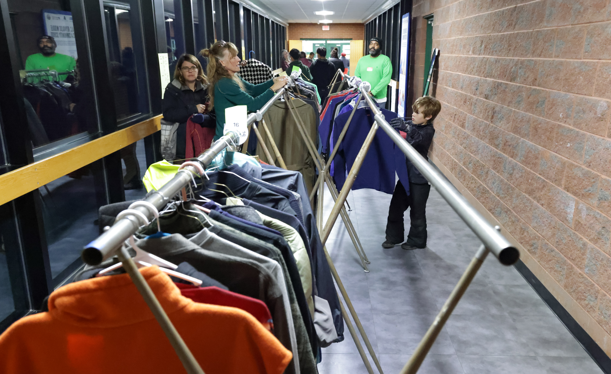 As families moved through the building, they found more than a meal and a place to gather. Over 250 freshly cleaned winter coats were shared, along with hats, gloves, and hoodies—each one made possible through an incredible network of partners and volunteers. From the NC Medical Society Coat Drive at the Grove Park Inn, to Marvin Thomas, owner of Swannanoa Cleaners, offering the amazing in-kind donation of cleaning of every single coat, to resource team members laundering eight full bags, this was community effort layered upon community effort. Six Key Club students from A.C. Reynolds High School—guided by PTSA Vice President Marsha van Rijssen—sorted and organized every coat with care before families arrived, making sure everyone could find something that fit and felt right.