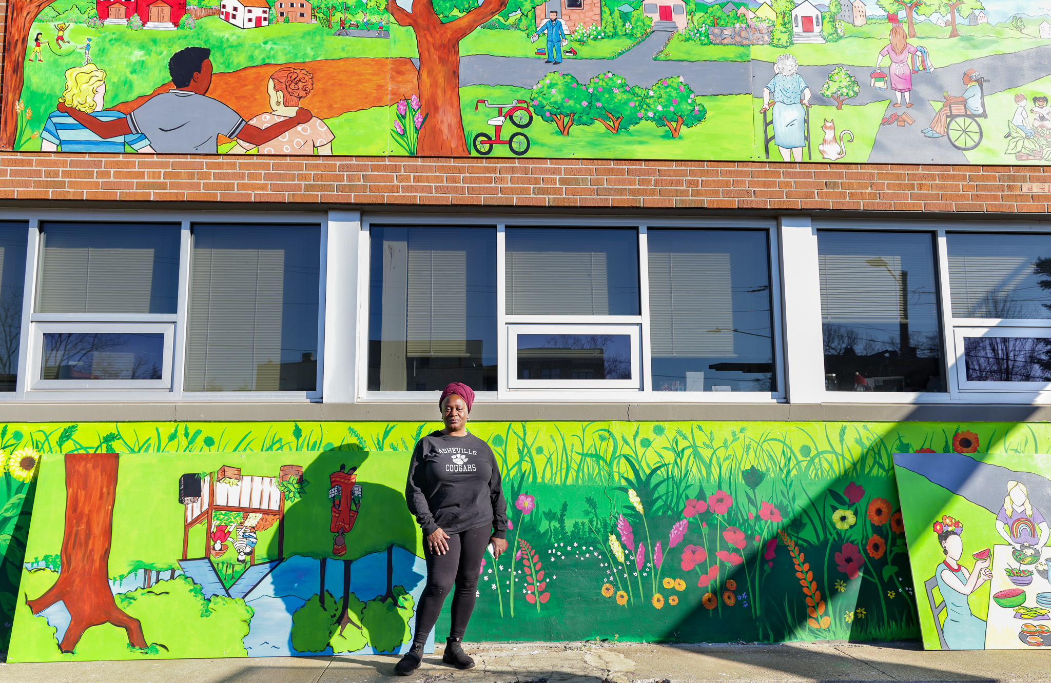 From the very beginning, Pickens's proposal for the mural was deeply personal and representative of our community. She wanted to capture the essence of Buncombe County now and the inclusive and thriving community we are working towards. It is no wonder that we have been eager to have a local artist bring this vision to life. The mural, which is now almost complete, features a brightly colored outdoor neighborhood scene that represents the fully inclusive and thriving Buncombe County that we are all working towards.