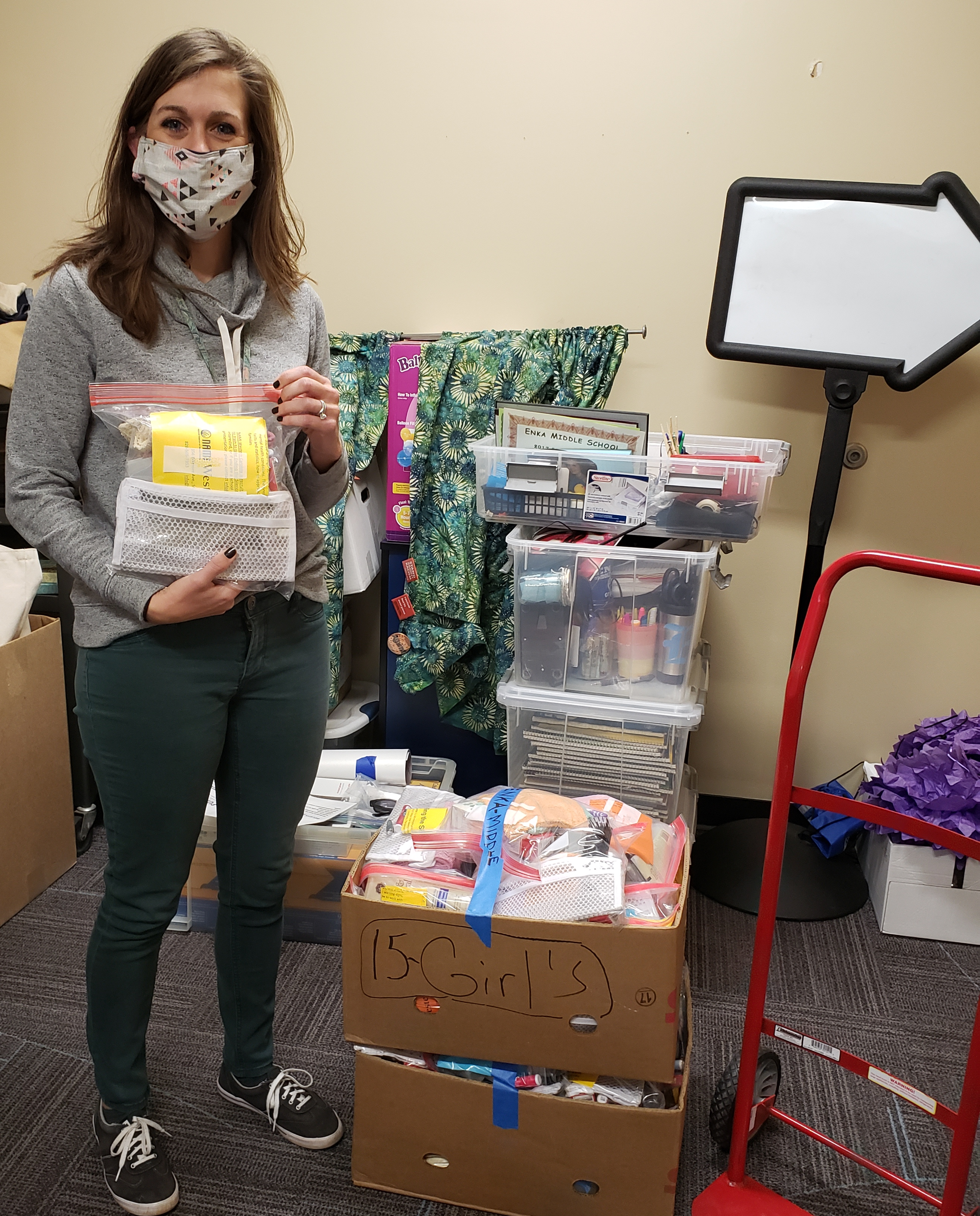 Our team created a personal care kit project that could easily be put together by a community partner to help provide easily deliverable/curbside pickup bags for students to have access to personal care items. NAMI of WNC thought this would be a great way for residents living with disabilities bound to their adult care homes to dig in and be part of the community while remaining safe during the threat of COVID.